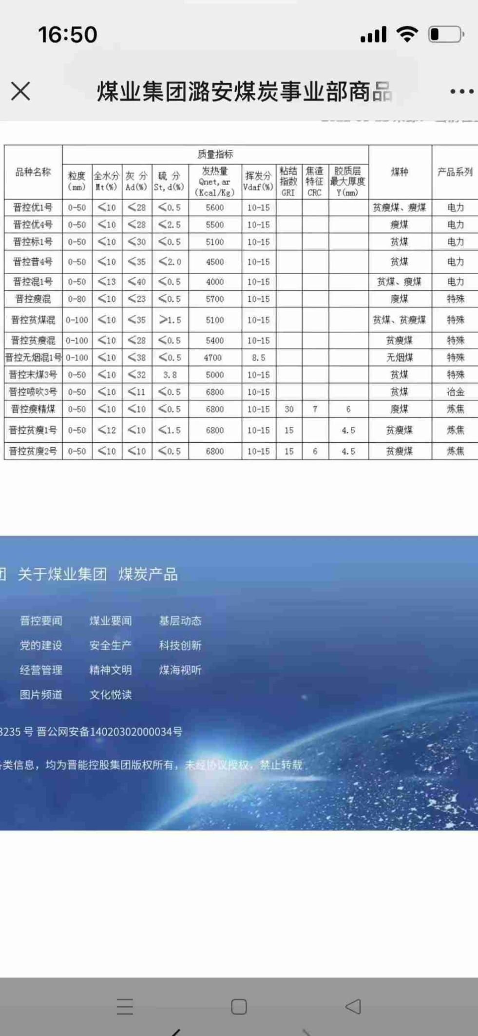 谢谢!请问有没有具体到如:李村等煤矿的指标与价格?