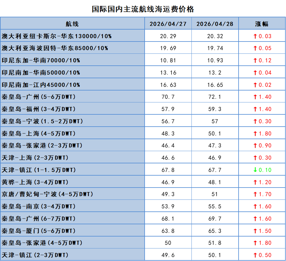 随着大秦线检修结束,北方港口煤炭库存小幅增加。同时,临近假期,高运价刺激下,货主着急锁船,市场可用运力收缩,进江小船在大船带动下运价也出现明显回升。
