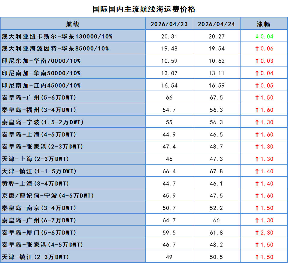 内外贸煤炭价格倒挂,北方煤炭供应紧张,煤炭贸易商维持挺价状态,低价不发货。加上近期外贸市场行情火热,内外贸兼营船回流不多,沿海煤炭运输市场需求良好,运力收紧,推动运价持续上涨。